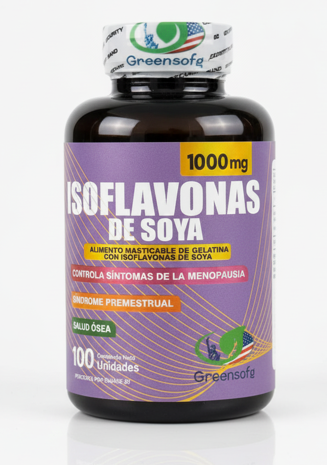 Capsulas con isoflavonas de soya, enfocado en el bienestar femenino y la salud ósea.